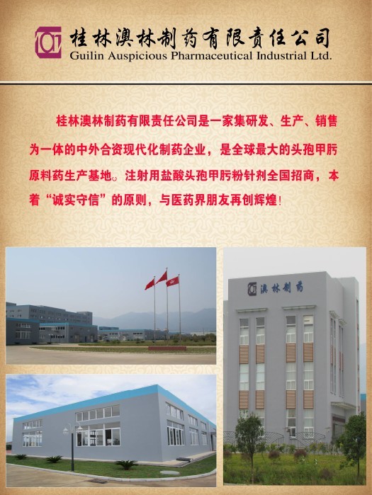 創(chuàng)建于2002年3月的桂林澳林制藥有限責任公司,是由香港“萬隆科技有限公司”和“ 桂林制藥有限責任公司” 合資創(chuàng)建的企業(yè), 目前已發(fā)展成為集藥物研究、制造、銷售于一體的新型醫(yī)藥實業(yè)企業(yè)。公司長期致力于開發(fā)生產(chǎn)療效獨到的藥品并創(chuàng)造了較好的經(jīng)濟效益和社會效益,通過了國家高新技術企業(yè)認定,并在2011年實現(xiàn)了單品過億的銷售業(yè)績。2009、2010、2011年連續(xù)三年榮獲桂林市高新區(qū)納稅大戶,經(jīng)濟工作一等獎;2010年、2011年連續(xù)兩年或桂林市人民政府頒發(fā)的“企業(yè)納稅貢獻獎”;桂林市“誠信單位”;企業(yè)商標被認定為廣西著名商標;2013年12月被評為“桂林市首屆十大最具創(chuàng)新特色企業(yè)”。